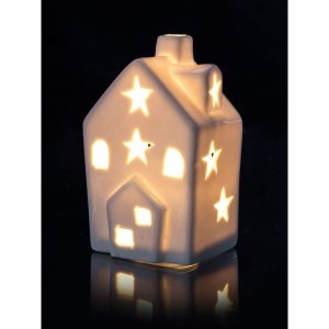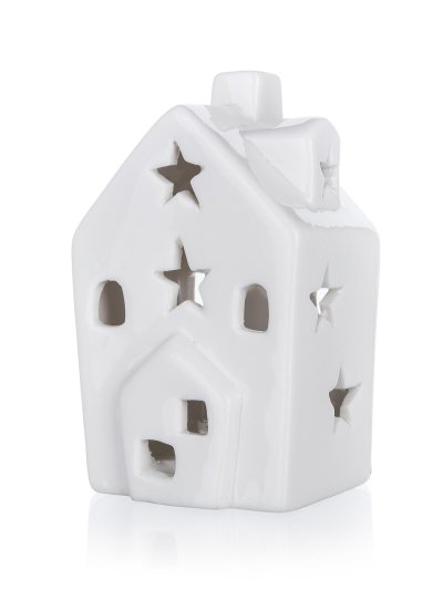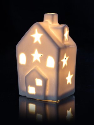 Domeček LED s bílým světlem, var. 1, vyrobený z porcelánu v bílé barvě je krásná dekorace do vašeho interiéru. Dekorativní domečky s mihotavým bílým světlem vytvářejí příjemnou atmosféru. Mihotavé světlo napodobuje světlo hořící svíčky. Obsahuje baterie a LED žárovku.