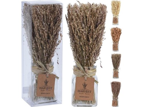 Dekorace přírodní TRÁVA 22 cm, ve skleněné nádobě, mix.