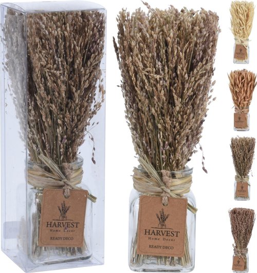 Dekorace přírodní TRÁVA 22 cm, ve skleněné nádobě, mix.