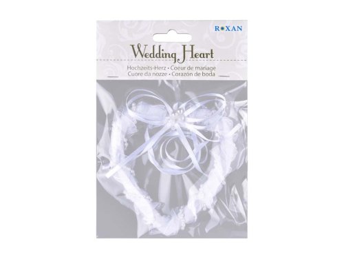 Svatební dekorace ve tvaru srdce, ideální pro ozdobení svatební tabule nebo interiéru. Její rozměry jsou 110 x 120 mm.