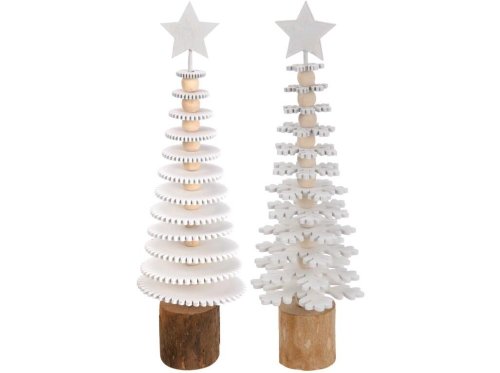 Stojící dřevěný stromek v bílém provedení navodí tu pravou vánoční atmosféru.