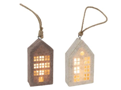 DEKORACE VÁNOČNÍ ZÁVĚSNÁ,DOMEČEK PLST LED 14,5 CM