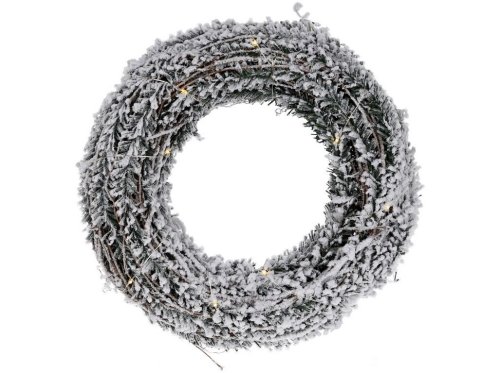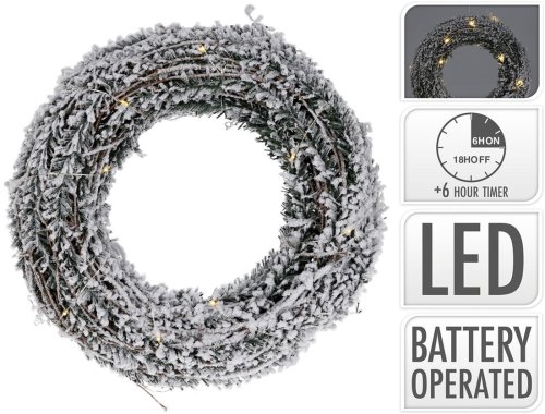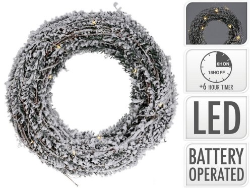 Dekorace VĚNEC 30 cm, RATAN se sněhem, 20LED, s časovačem.