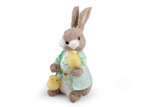 Dekorační zajíc vám bude během velikonočních svátků dělat příjemnou společnost. A ne jenom během Velikonoc, ale díky svému vintage vzhledu ho můžete mít vystaveného klidně i po celý rok. Působí roztomile, je kvalitně zpracovaný a má velmi dobrou stabilitu. [ Povrch zajíčka je z jemných textilních vláken, které působí jako srst. Zamilujete si také hravé detaily v podobě oblečení a kuřátka. V uších jsou dráty, díky kterým je můžete tvarovat.]