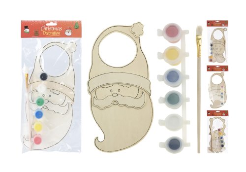 rozměry: 110 x 240 x 5 mm materiál: dřevo mix druhů: sněhulák, Santa, sob součástí balení je štětec + 6 kalíšků s barvami (bílá, žlutá, červená, modrá, zelená, černá)