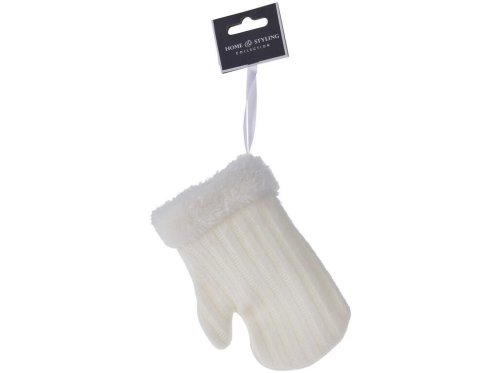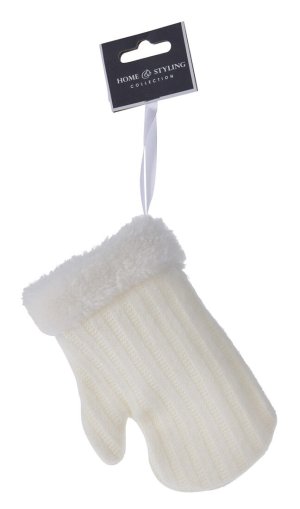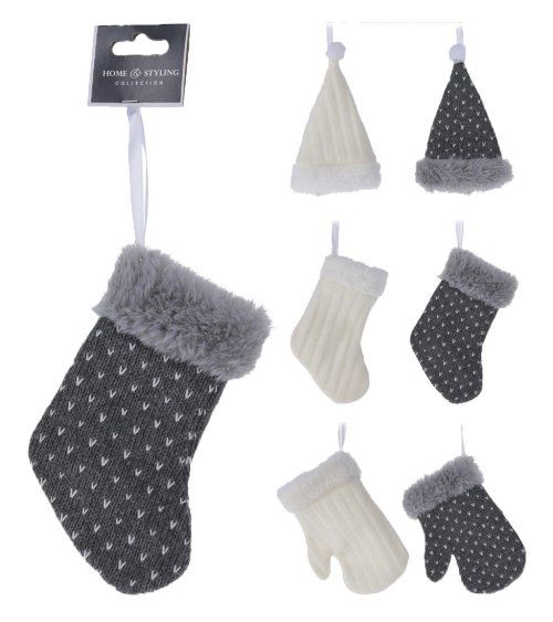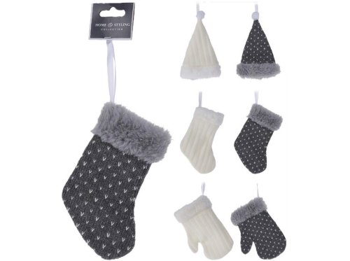 Dekorace závěsná mix RUKAVICE / PUNČOCHA / ČEPICE, 15 cm, BÍ, ŠE.