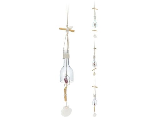 Závěsná dekorace pr. 7 x 17 cm, dřevo / lano / sklo / mušle mix.
