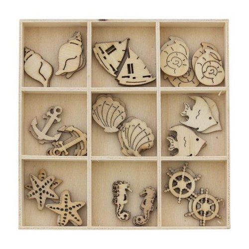 Dekorační dřevěné výřezy - mořský život, 45 ks