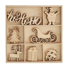vánoční dřevěné dekorace motivy: 7 různých motivů - nápis HOHOHO, Santa Claus, sáně, stromeček, sob, dáreček, vánoční ozdoba na stromeček vhodné k dekoraci, papírovému či jinému tvoření balení obsahuje …
