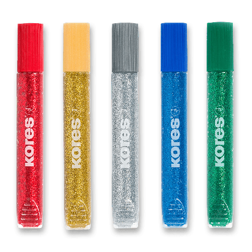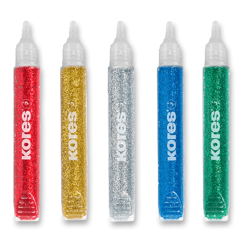 v 5 různých barvách: červená, modrá, zelená, stříbrná a zlatá, * obsahuje 10,5 ml v každé barvě, * precizní hrot pro čistou, rychlou a přesnou aplikaci, * vzduchotěsný uzávěr: bezpečné pro děti, * ideální pro dekorativní a kreativní lepení, * snadno vypratelné