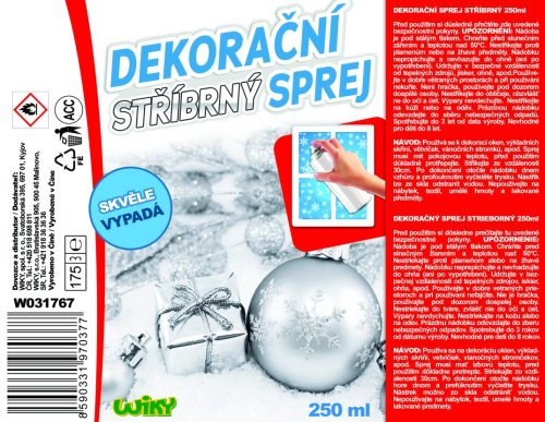 Dekorační sprej Stříbrný 250 ml K dekoraci oken, větviček, vánočních stromků atd.