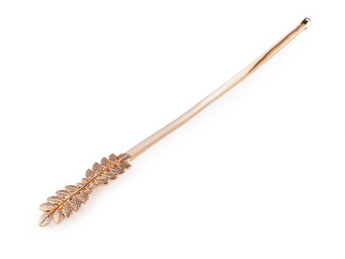 Kovový dekorační úvaz zdobí spona ve tvaru listů. Je pružinový a dá se natáhnout. Využijete ho na ozdobení závěsů, záclon apod.