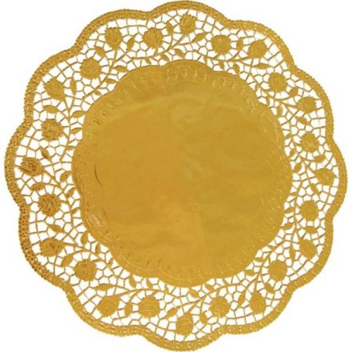 Dekorativní krajka kulatá, zlatá. Průměr 30 cm, balení 4 ks.