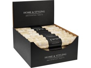 Dekorativní látka polyester 2500x280mm role potisk vločky, zlatá, bílá, šampaň