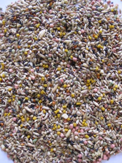 Složení: semínka (1 % chia, 1 % quinoa), obiloviny, ovoce (2 % rozinky, 1,5 % sušené šípky, 1 % sušené bobule jalovce, 1 % sušený banán, 0,8 % sušené jeřabiny, 0,8 % sušené jablko, 0,8 % sušené ananas, 0,8 % sušená papája), ořechy (3 % cedrové ořechy, 1,5 % arašídy, 0,8 % vlašské ořechy, 0,8 % para ořechy), zelenina (1,5 % sušená mrkev, 0,8 % chilli papričky), minerální látky (2,5 % ptačí krupice), deriváty rostlinného původu, kvasnice, oleje a tuky.
