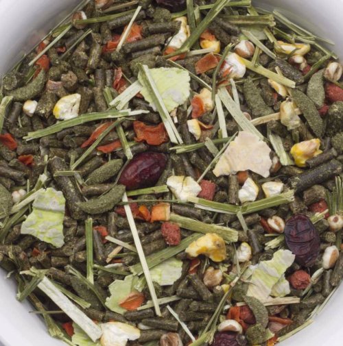 Krmivo je obohaceno o sušené šípky, které jsou nejen zdravé ale navíc přispívají k obrušování zubů, protože zvíře musí rozkousnout tvrdý povrch suchého šípku.
