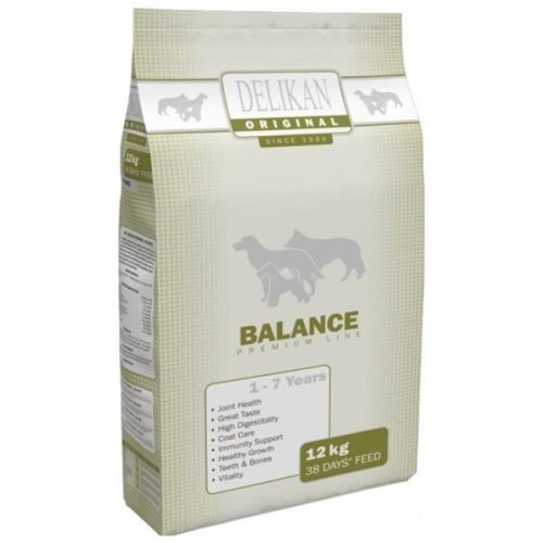 Kompletní prémiové krmivo pro dospělé psy všech plemen. Krmivo obsahuje sušené drůbeží maso, které je jedinečným zdrojem obsahu bílkovin. Obsah bílkovin a tuků je přizpůsobený potřebám psů s normální aktivitou. DELIKAN ORIGINAL BALANCE výborně pokrývá veškeré potřeby psa, proto není nutné k němu přidávat jakékoliv doplňky. Bez sóji, barviv a chemických konzervantů. Složení: pšenice, dehydrované drůbeží maso – 28 %, drůbeží tuk – 8 %, sušená řepná dužina, sušená jablka, hydrolyzovaná drůbeží játra, rozmarýnový olej, glukosamin – 200 mg/kg, chondroitin sulfát – 150 mg/kg , Yucca Schidigera, minerální látky a vitaminy. Analytické složky: hrubý protein 23 %, hrubý tuk 11 %, hrubý popel 6,3 %, hrubá vláknina 2,7 %. Krmný návod: Krmivo podáváme v suchém stavu, popřípadě přelité vlažnou vodou nebo vlažným vývarem. Po přelití doporučujeme podávat za 10 minut, až granule nasáknou tekutinu. Zvířeti je nutno zajistit dostatek čerstvé vody k pití. Skladování: Krmivo skladujte v suchém, chladném a vzdušném místě.