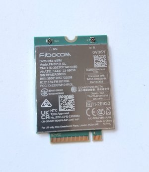 Modul podporuje klasickou SIM kartu přes externí slot i eSIM s režimem Dual SIM (dostupnost eSIM závisí na regionu a požadavcích operátora). K dispozici jsou pokročilé funkce jako Radio On/Off pro vypnutí rádiového vysílání a Wake on Wireless pro probuzení systému při příchozím datovém přenosu.