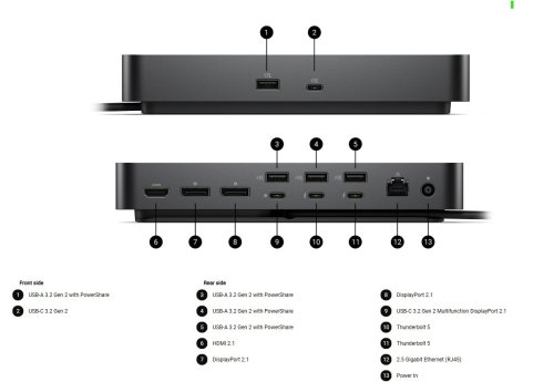 Rozhranní/porty Rozhraní hostitele: Thunderbolt 5 Celkový počet portů USB: 6 Počet portů USB 3.2 Gen 2 typu A: 4 Počet portů USB typu A: 4 Počet portů USB typu C: 2 USB typu A: Ano USB typ C: Ano Síť (RJ-45): Ano Počet konektorů DisplayPort: 2 DisplayPort: Ano Verze DisplayPortu: 2,1 Počet portů HDMI: 1 HDMI: Ano Verze HDMI: 2.1 Thunderbolt: Ano Množství portů Thunderbolt: 2