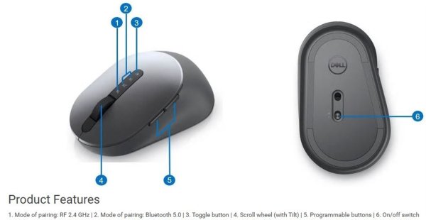 Myš Dell MS5320W Bezdrátové připojení přes Wi-Fi nebo Bluetooth Snadné přepínání mezi až 3 zařízeními Optický snímač s citlivostí 1600 DPI Výdrž baterie až 36 měsíců 7 programovatelných tlačítek Vhodná …