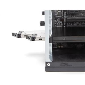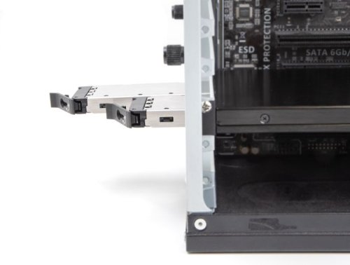 Díky speciálnímu mechanismu lze SSD rychle a snadno vyměňovat. Například lze vyndat datové zálohy a uložit je na bezpečném místě.