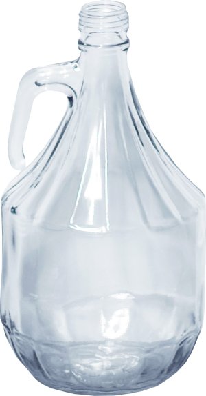 Skleněný demižon k uchování lihovin. Demižon je dodáván se zátkou.