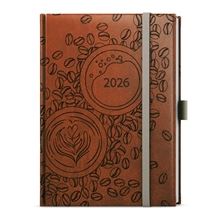 Denní diář v hnědé vivelle s krásnou celoražbou motivu Kávových zrn Diář v B6 formátu s velkým prostorem pro poznámky a plánování Rozměr: 12 x 16,5 cm Počet stran: 336