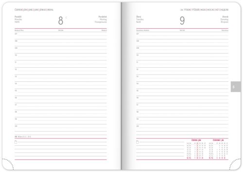 Denní diář Ajax 2026 ve zlaté barvě. Jemně strukturovaný povrch s atypickým reliéfem je vhodný pro všechny typy ražeb. Diář má zakulacené rohy, poutko na tužku a elastickou gumičku. Denní rozvrh s česko-slovenským kalendáriem a doplňkovou angličtinou, němčinou, maďarštinou a ruštinou.