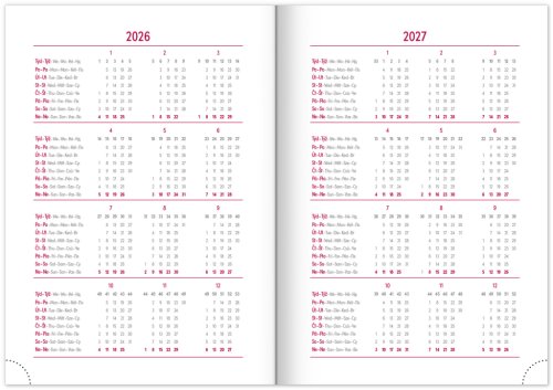Plánovací denní diář Balakon 2026 v provedení bordó, doplněný o stříbrný letopočet. Povrch diáře si získal oblibu díky kvalitnímu svrchnímu materiálu, který je extrémně odolný vůči vnějšímu poškození. Denní rozvrh s česko-slovenským kalendáriem a doplňkovou angličtinou, němčinou, maďarštinou a ruštinou.