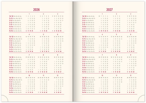 Nová řada diářů v moderním designu doplněném o pevnou gumičku a poutko na pero. Denní rozložení s česko-slovenským kalendáriem a doplňkovou angličtinou, němčinou, maďarštinou a ruštinou.