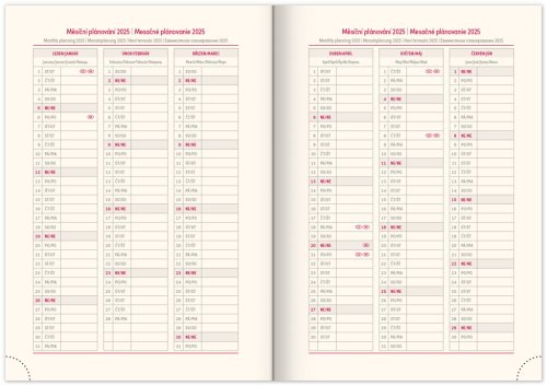 Denní diář Vellum 2025 v oranžové barvě. Nová kolekce vsadila na osvědčené barvy, které doplňuje nová ražba letopočtu. Denní rozvrh s česko-slovenským kalendáriem a doplňkovou angličtinou, němčinou, maďarštinou a ruštinou.
