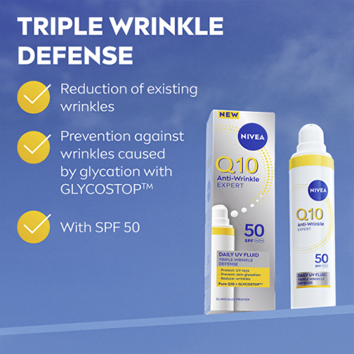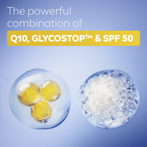 Tento lehký fluid s koenzymem Q10, technologií GLYCOSTOP® a SPF 50 poskytuje pleti vysokou ochranu před slunečním zářením, zároveň redukuje existující vrásky a brání vzniku nových známek stárnutí. Je ideální pro každodenní použití a vhodný pro všechny typy pleti, včetně mastné a smíšené.