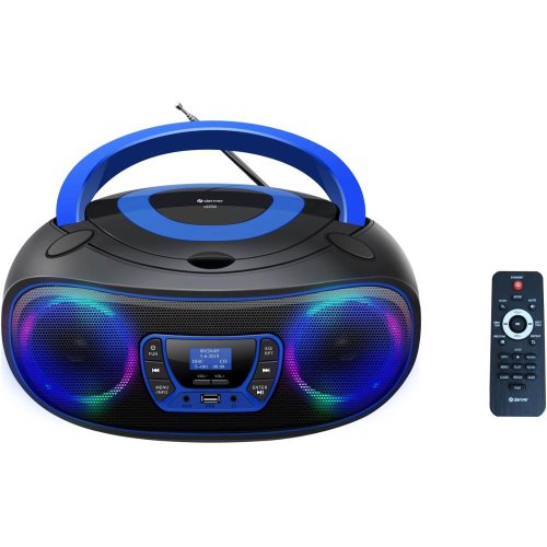DAB+/FM tuner LCD displej LED osvětlení okolo reproduktorů Bluetooth 5.0 CD přehrávač USB vstup - podpora MP3 AUX vstup 3,5 mm
