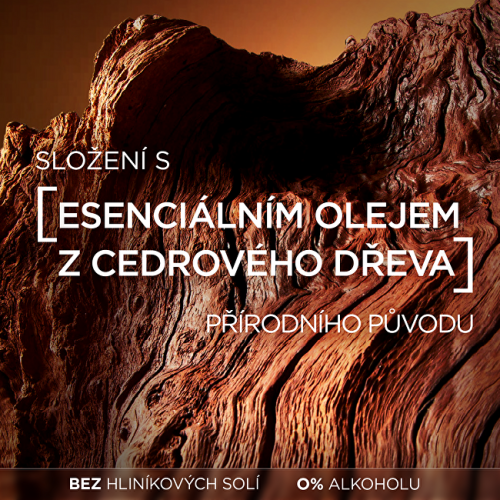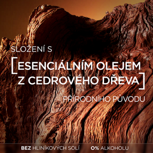 Deodorant Men Expert s okamžitým osvěžením obsahuje esenciální olej z cedrového dřeva. Esenciální olej z cedrového dřeva má zemitou, uklidňující, dřevitou vůni. Má čisticí a přirozeně dezodorační vlastnosti.