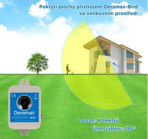 Deramax-Bird je určený pro ochranu vnitřních i venkovních prostor. Plašič ptáky nezabíjí, ani nezraňuje, pouze vymezuje prostor ve kterém by se neměli pohybovat.
