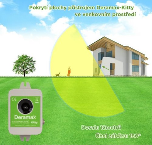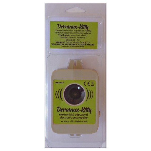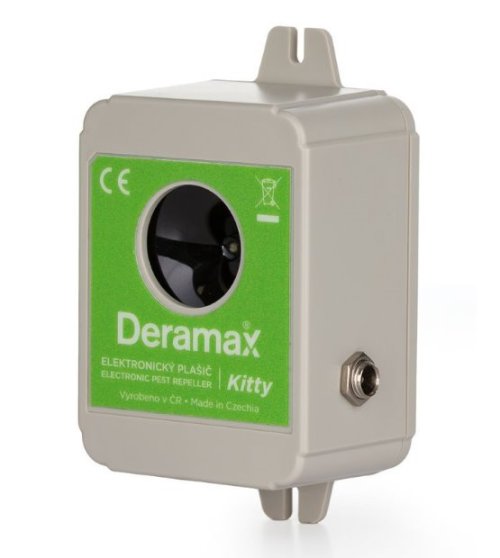 Ultrazvukový plašič (odpuzovač) Deramax-Kitty je elektronické zařízení, které slouží k ochraně venkovních prostor před toulavými kočkami, psy a divokou zvěří. Škůdci jsou trvale obtěžováni ultrazvukovými signály plašiče a v krátkém čase opouští chráněný prostor. Deramax-Kitty pracuje v kmitočtové oblasti, která je pro člověka za hranicí slyšitelnosti, proto neruší a neobtěžuje své okolí nepříjemným hlukem. Provoz přístroje je zcela ekologický, bez využití chemických prostředků.