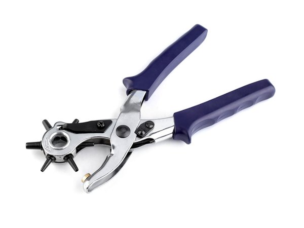 Děrovací kleště jsou skvělým univerzálním pomocníkem při děrování. Oceníte je hlavně při práci s kůží, například na opasky, tašky, popruhy ke kabelkám apod. U kleští můžete nastavit až 6 velikostí děrování s průměry 2,5 mm, 3 mm, 3,5 mm, 4 mm, 4,5 mm a 5 mm. Práce s nimi je jednoduchá, materiál položíte na podložku a kleště zmáčknete.