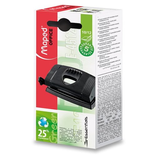 strukturovaný povrch u zóny stisku, * kovový mechanismus, * rozteč mezi otvory 8 cm, * příložník na papíry různých rozměrů, * na 10 listů papíru 80 g/m2 nebo 12 listů papíru 70 g/m2