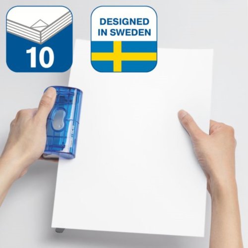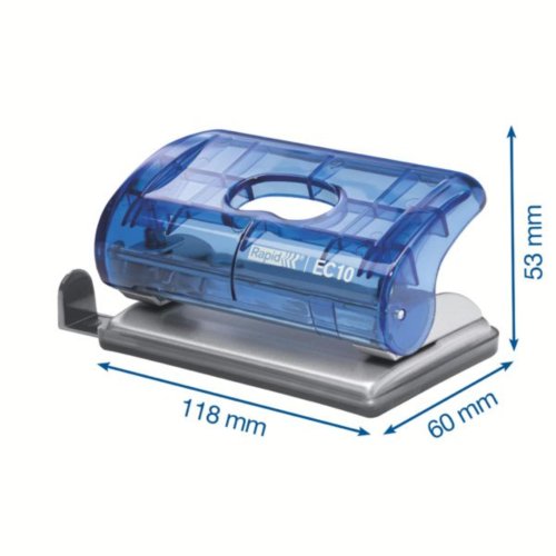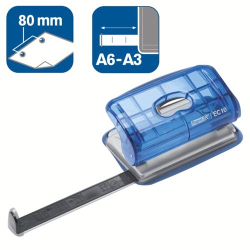 Kovová mini děrovačka s ramenem a základnou z vyztuženého plastu ABS Příložník pro všechny standardní formáty A4, A5, A6 Rozměry: 7,6 x 4,3 x 11,0 cm (š x v x h) Výkon 10 listů Záruka 5 let
