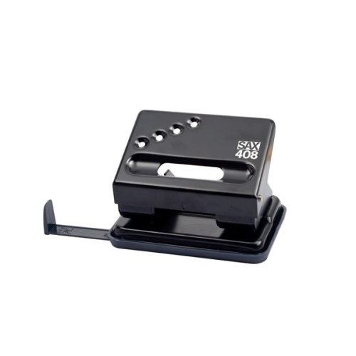Spolehlivá celokovová děrovačka SAX 408 v retro designu Příložník na klasické formáty A4, A5 a A6 Odřezky jsou shromažďovány na odklopném plastovém dně Rozteč otvorů: 8 cm; průměr otvoru: 5,5 mm Kapacita …