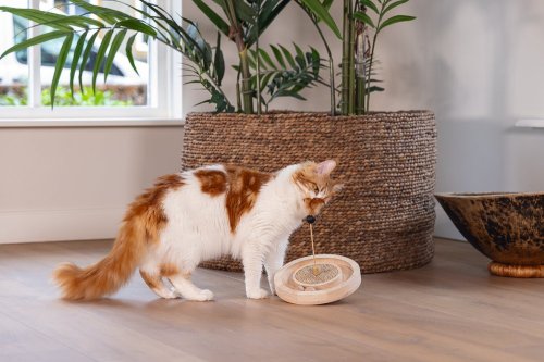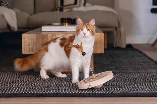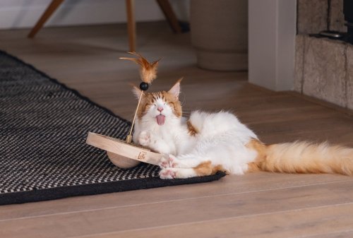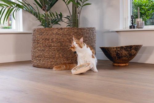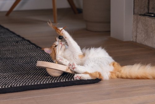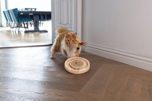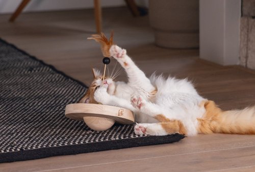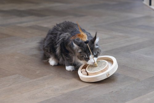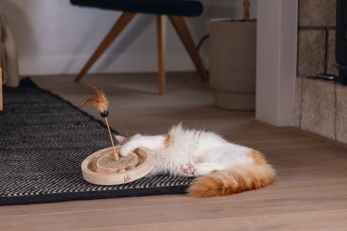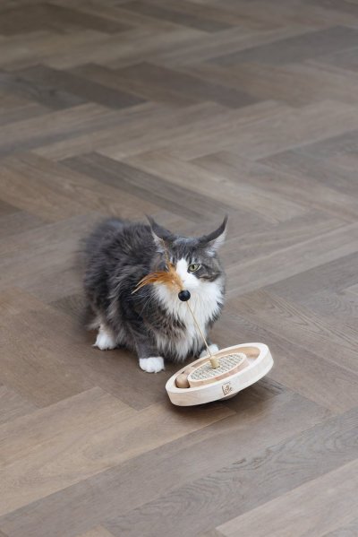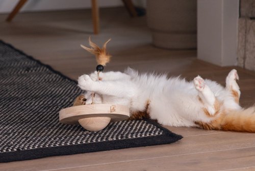 Hračka, škrabadlo, přírodní vzhled a kývací efekt? Toto všechno nabízí Winni - hračka pro kočky od Designed by Lotte. Je vyrobená z kaučukovníku, a tak bude vypadat skvěle ve Vašem interiéru. Díky různým herním prvkům bude Vaše kočka extra motivovaná ke hře. Hračka disponuje sisalovou škrabací podložkou, kterou může Vaše kočka hravou formou používat k péči o své drápky. Uprostřed najdete škádlítko s dřevěnou kuličkou a pírky, a dále koulodráhu s dalšími 2 dřevěnými koulemi. Jakmile se Váš mazlíček dotkne těchto herních prvků svými tlapkami či čumáčkem, hračka se díky svému kulatému dřevěnému dnu začne kývat. Tento kývací efekt motivuje Vaši kočku k další a další hře.