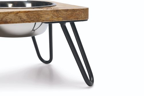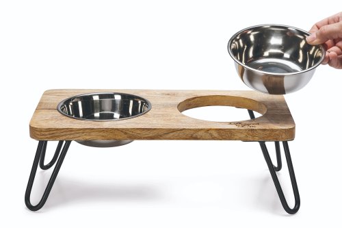 S unikátním jídelním setem Linga budete mít krmivo a vodu pro Vašeho mazlíčka stylově a úhledně pohromadě. Díky vyvýšené pozici misek zajišťuje tato jídelní souprava při krmení optimální polohu, a podporuje tak dobré držení těla. Linga zaujme svým robustním zpracováním - deskou z mangového dřeva a 2 nerezovými miskami na ocelových nohách. Misky jsou vhodné do myčky nádobí, takže se velmi snadno čistí.