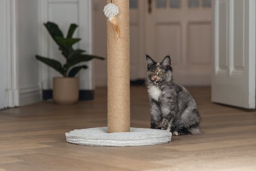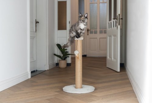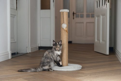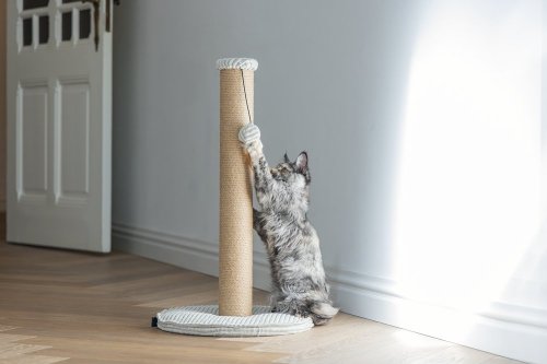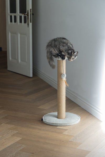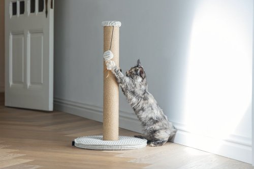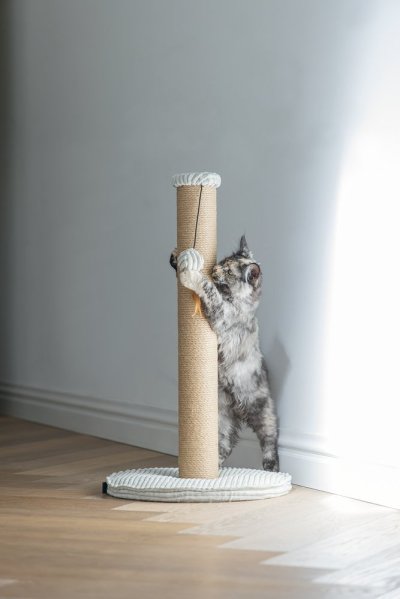 Toto škrabadlo bude nejen užitečné pro Vaši kočku a péči o její drápky, ale bude také vypadat skvěle ve Vaší domácnosti. Základna je potažena luxusní žebrovanou tkaninou, ve které jsou vyvedeny i další detaily. Škrabací sloupek je omotán jutovým lanem. Zde Váš mazlíček může svisle škrábat do sytosti a Váš nábytek tak už nebude sloužit jako škrabadlo. Díky zavěšené hračce ve formě míčku s pírkem je škrabadlo i neodolatelně zábavné. Zkrátka - s tímto škrabadlem uděláte radost sobě i své kočce.