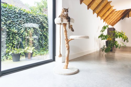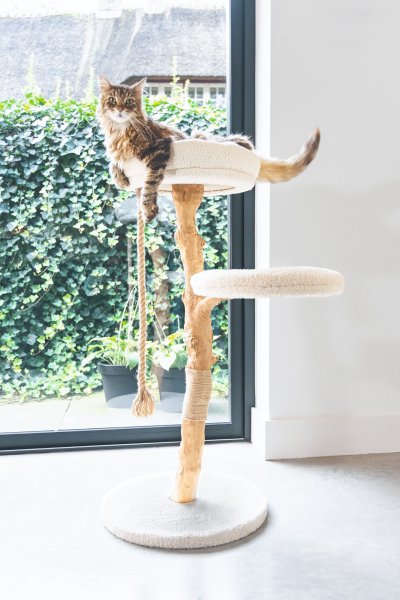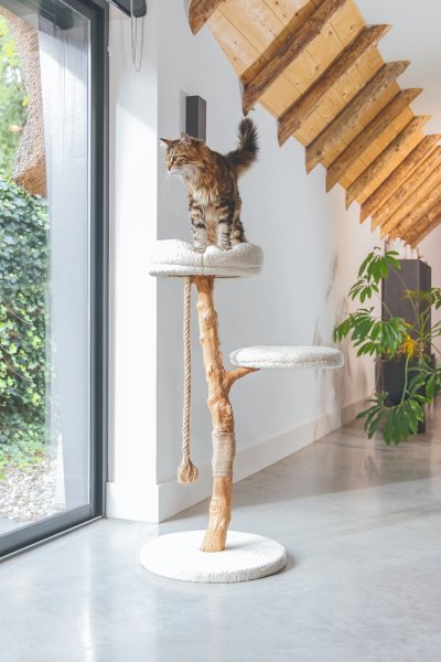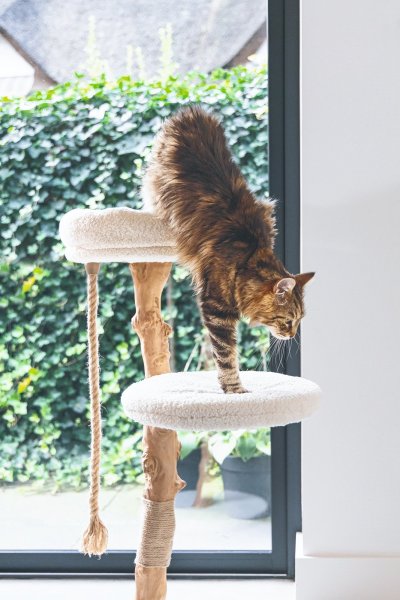 Vilja od Designed by Lotte mezi ostatními škrabadly okamžitě zaujme. Je vyrobeno z datlového a hruškového dřeva, které dodávají škrabacímu stromu jedinečný přírodní vzhled. V horní části tohoto škrabadla najdete měkký pelíšek z krásné plyšové látky. Vaše kočka může v tomto kočičím košíku odpočívat, zatímco má z vyvýšeného místa dokonalý přehled. To je něco, co mají kočky opravdu rády. Nebo může lenošit na prostřední plošině. Herním prvkem je jutové lano, které zároveň poskytuje péči o drápky. Škrabadlo Vilja bude nejen krásným kouskem nábytku ve Vašem interiéru, ale bude také funkční a pohodlné pro Vašeho mazlíčka. Potahy relaxačních prostor lze sejmout a prát na 30 stupňů.
