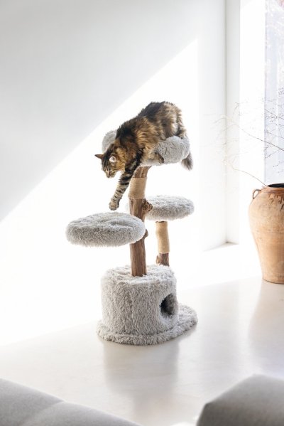 Každá kočka potřebuje v domě ideálně několik míst na škrábání. Jedním z nich může být škrabadlo Ziza od Designed by Lotte. Toto stylové škrabadlo je vyrobeno z přírodního dřeva a doplněno měkkým plyšem. Díky výplni jsou odpočinkové platformy a kočičí domeček pro Vašeho mazlíčka velmi pohodlné. Potahy lze prát v pračce na 30 stupňů. Základní deska škrabadla je opatřena krytkami, aby se zabránilo nechtěnému pohybu. Škrabadlo je laděno do příjemné šedé barvy, která skvěle zapadne do každého interiéru!