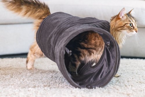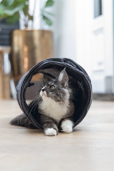 Elegantní tunel zajistí hodiny zábavy. Vaše kočka se bude ráda v tunelu schovávat nebo jím probíhat. Tunel má navíc jeden otvor uprostřed. Zabudované kovové kruhy udržují tunel otevřený a napnutý. Je opatřen krásnou, trendy žebrovanou látkou. Díky tomu se perfektně hodí k nejnovějším trendům bydlení a stane se krásným doplňkem Vašeho interiéru. Už si Váš chlupatý mazlíček dohrál? Pak můžete tunel snadno složit naplocho a uložit pro úsporu místa.