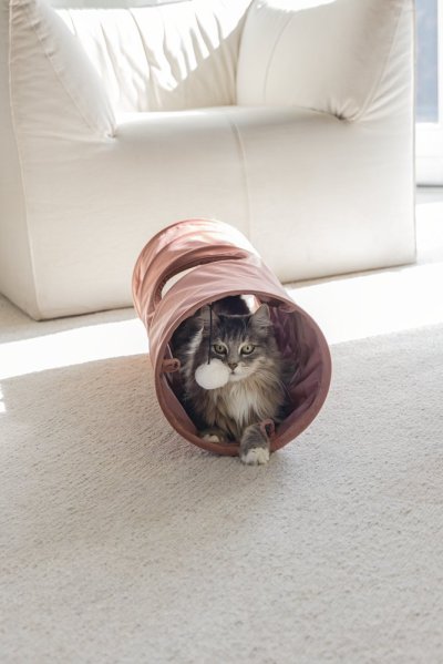 Elegantní tunel Cylla zabaví Vašeho domácího mazlíčka na celé hodiny. Vaše kočka se bude ráda v tunelu schovávat nebo jím probíhat. Tunel má otvor nejen vpředu a vzadu, ale Vaše kočka může také uniknout z tunelu otvorem uprostřed. Přidaná hračka ve formě zavěšeného chlupatého míčku se postará o extra zábavu. Zabudované kovové kruhy udržují tunel otevřený a napnutý. Kočičí tunel Cylla má zvenku krásnou sametovou látku, díky které se krásně hodí do každého interiéru a můžete jej sladit s různými trendy bydlení. Už si Váš chlupatý mazlíček dohrál? Pak můžete tunel snadno složit naplocho a uložit pro úsporu místa.