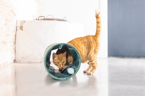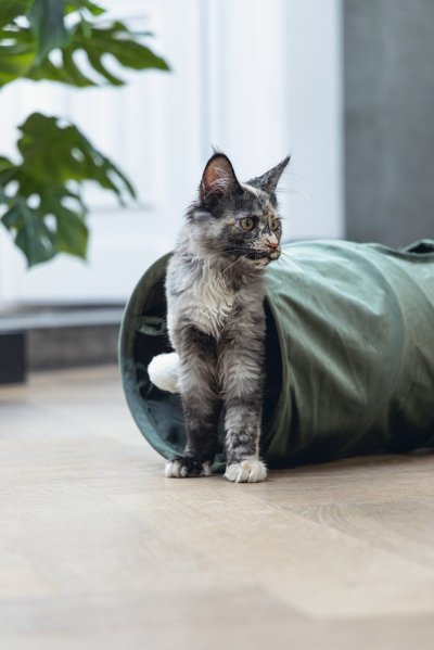 Elegantní tunel Cylla zabaví Vašeho domácího mazlíčka na celé hodiny. Vaše kočka se bude ráda v tunelu schovávat nebo jím probíhat. Tunel má otvor nejen vpředu a vzadu, ale Váš mazlíček může také uniknout z tunelu otvorem uprostřed. Přidaná hračka ve formě zavěšeného chlupatého míčku se postará o extra zábavu. Zabudované kovové kruhy udržují tunel otevřený a napnutý. Kočičí tunel Cylla má zvenku krásnou sametovou látku, díky které se hodí do každého interiéru a můžete jej sladit s různými trendy bydlení. Už si Váš chlupatý mazlíček dohrál? Pak můžete tunel snadno složit naplocho a uložit pro úsporu místa.