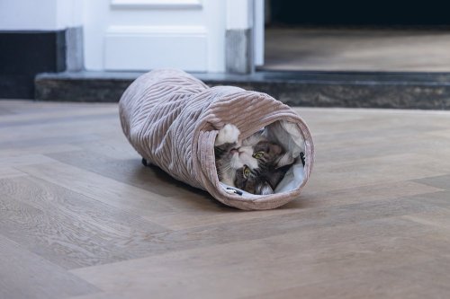 Elegantní tunel zajistí hodiny zábavy. Vaše kočka se bude ráda v tunelu schovávat nebo jím probíhat. Tunel má navíc jeden otvor uprostřed. Zabudované kovové kruhy udržují tunel otevřený a napnutý. Je opatřen krásnou, trendy žebrovanou látkou. Díky tomu se perfektně hodí k nejnovějším trendům bydlení a stane se krásným doplňkem Vašeho interiéru. Už si Váš chlupatý mazlíček dohrál? Pak můžete tunel snadno složit naplocho a uložit pro úsporu místa.