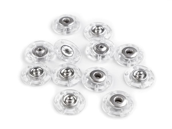 Designové plastové patentky jsou částečně transparentní. Podél okraje mají otvory, kterými je pohodlně našijete na látku. Mají široké využití.Využijete je jako zapínání na tašky, kabelky, kabáty, bundy, mikiny atd.